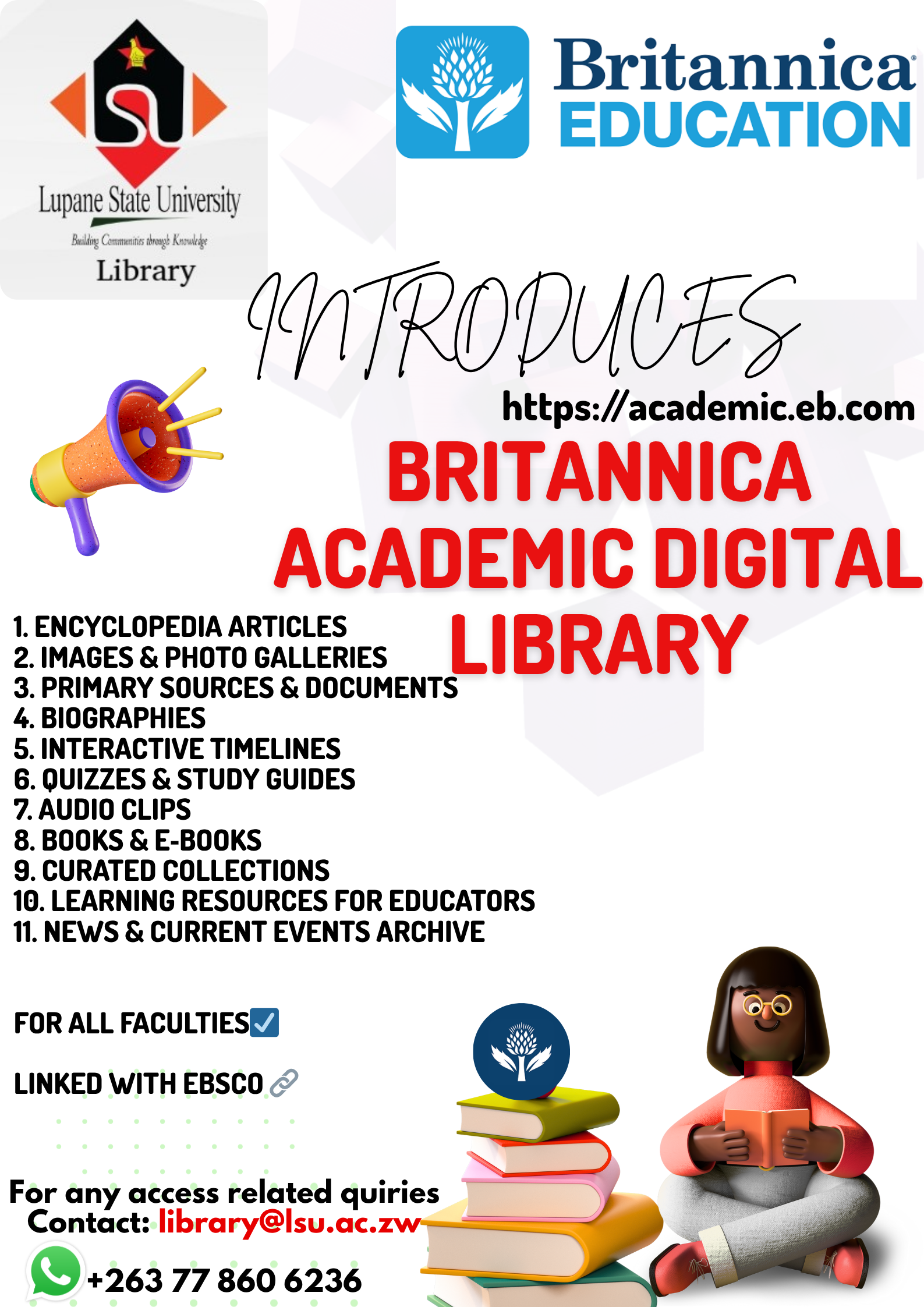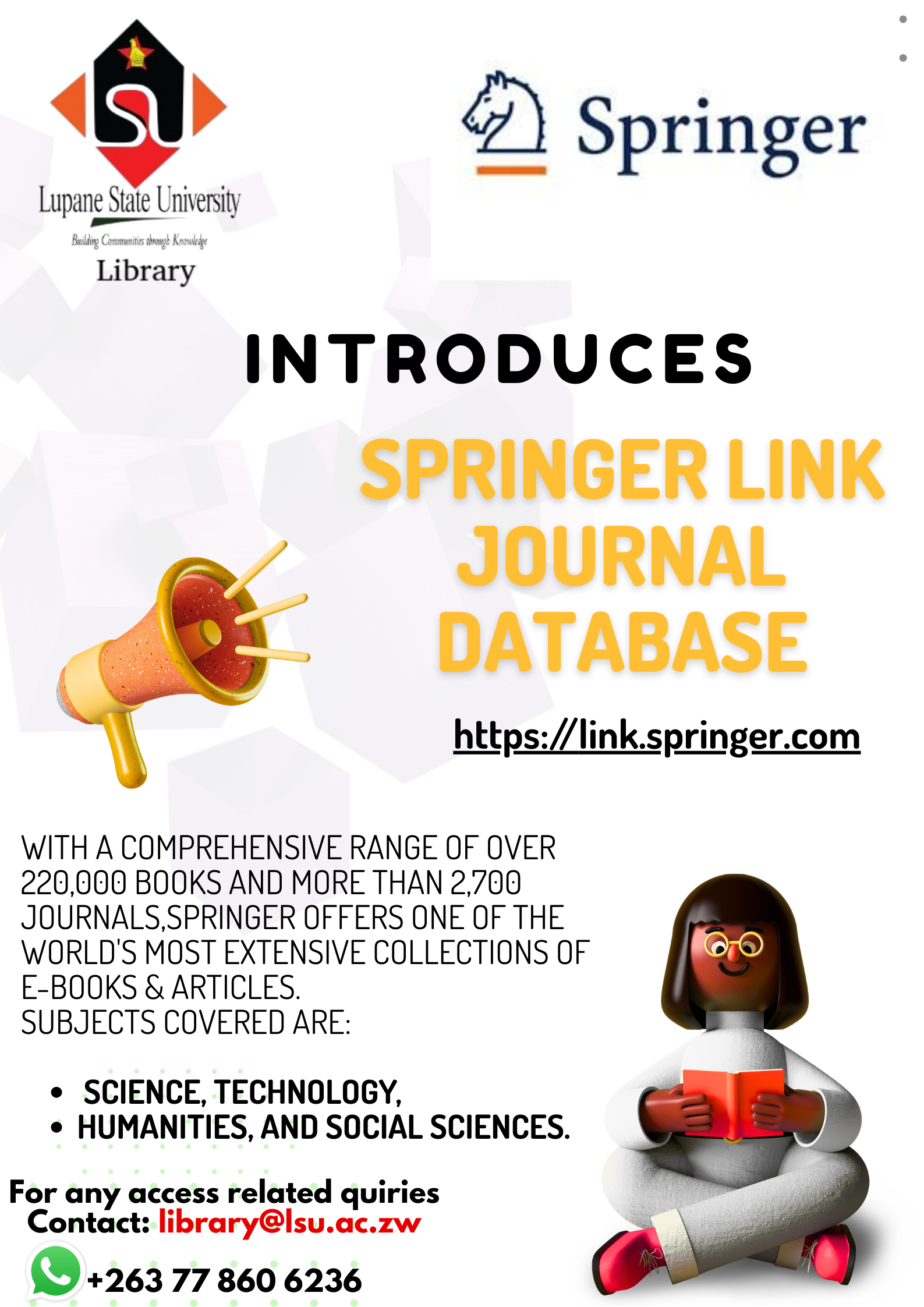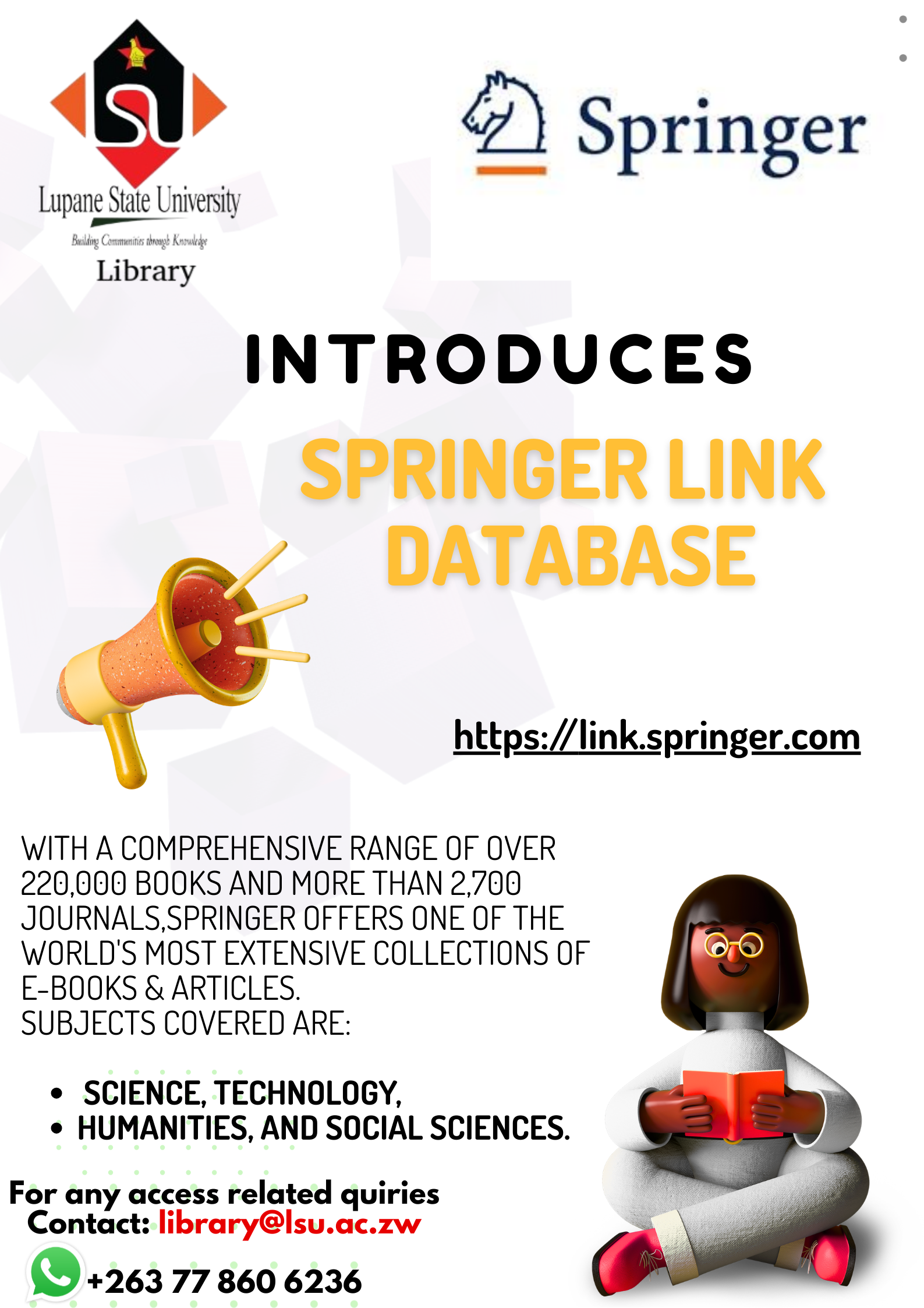 Welcome to the Lupane State University Library. Step inside, ignite your curiosity, and embark on a journey of discovery. Whether you're a seasoned scholar, a wide-eyed First year student, or simply a lifelong learner, this library is your intellectual oasis. Within these walls, and beyond them through our website, lies a universe of knowledge waiting to be explored.